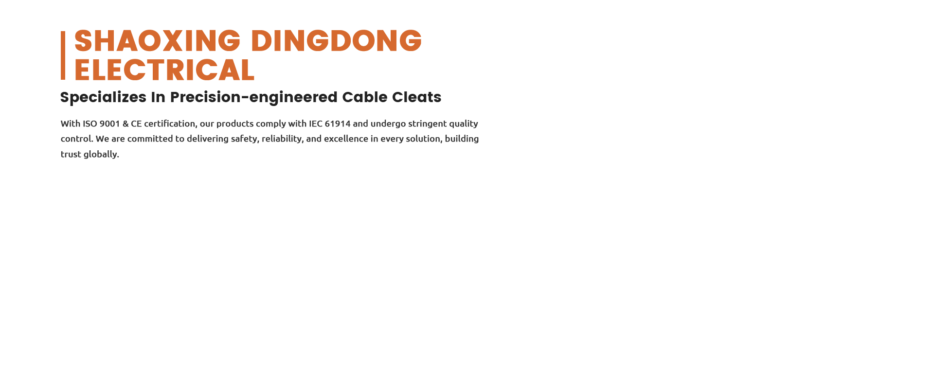 1. Protection: Cable cleats provide a reliable and robust solution for securing and protecting cables from damage caused by mechanical forces, vibrations, and short circuits.2. Safety: Cable cleats prevent cables from coming loose, which minimizes the risk of cable-related injuries or accidents.3. C